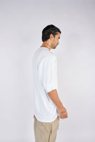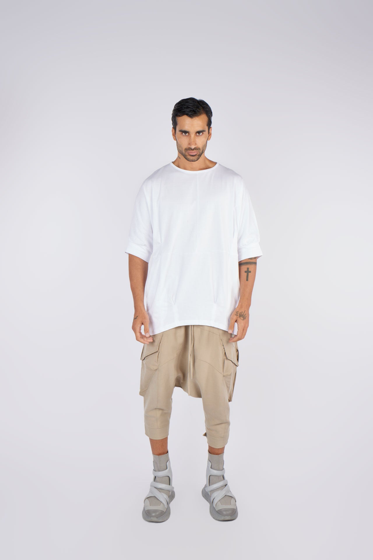 Glow of youthful energy under the backlight. Steal attention with this unisex oversized three-quarter-sleeved t-shirt, and stun everyone with seamless side pockets:
