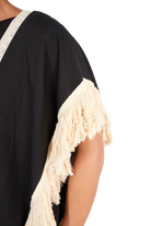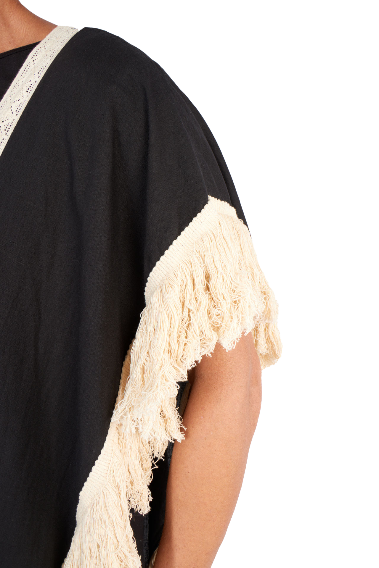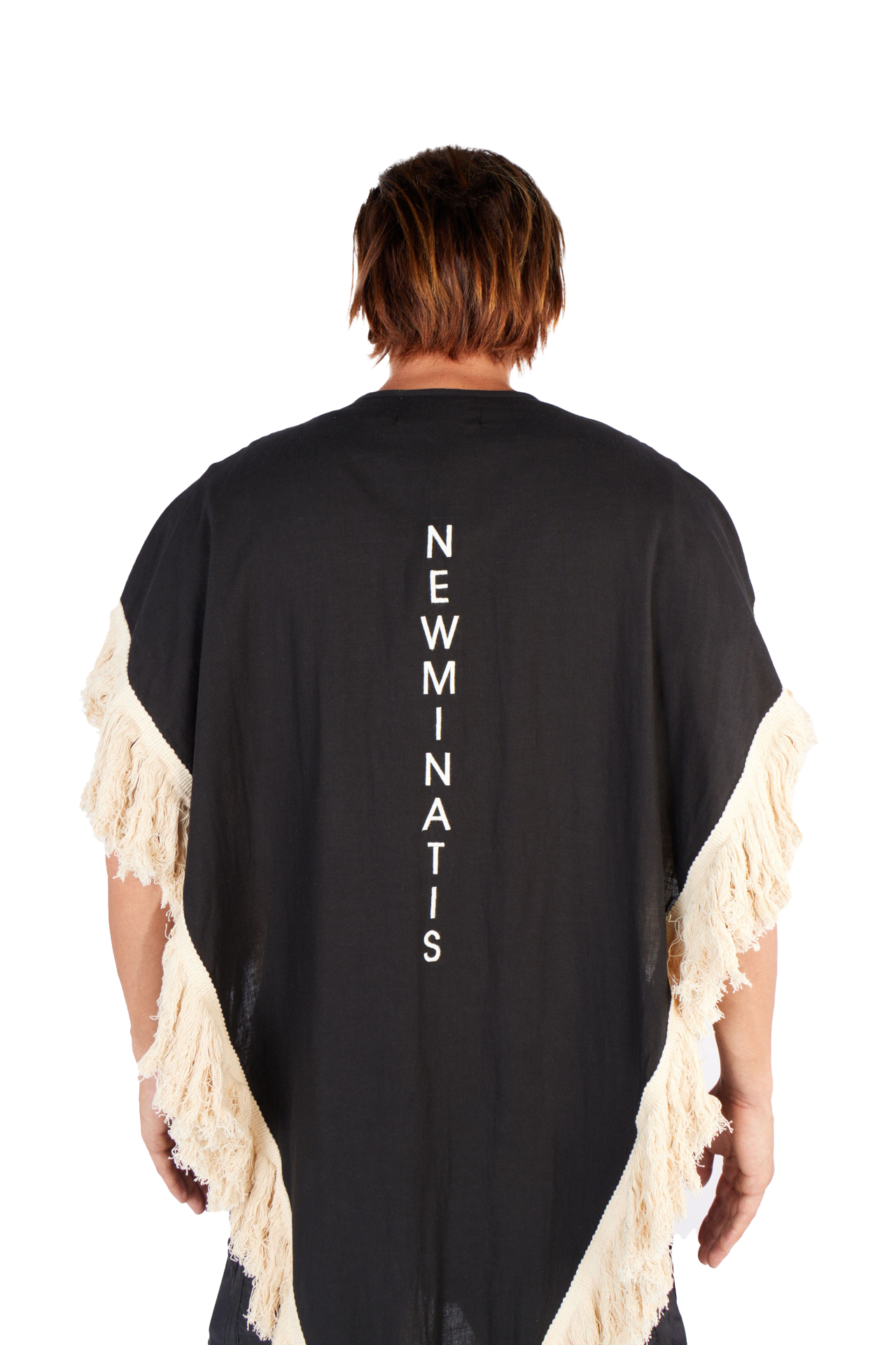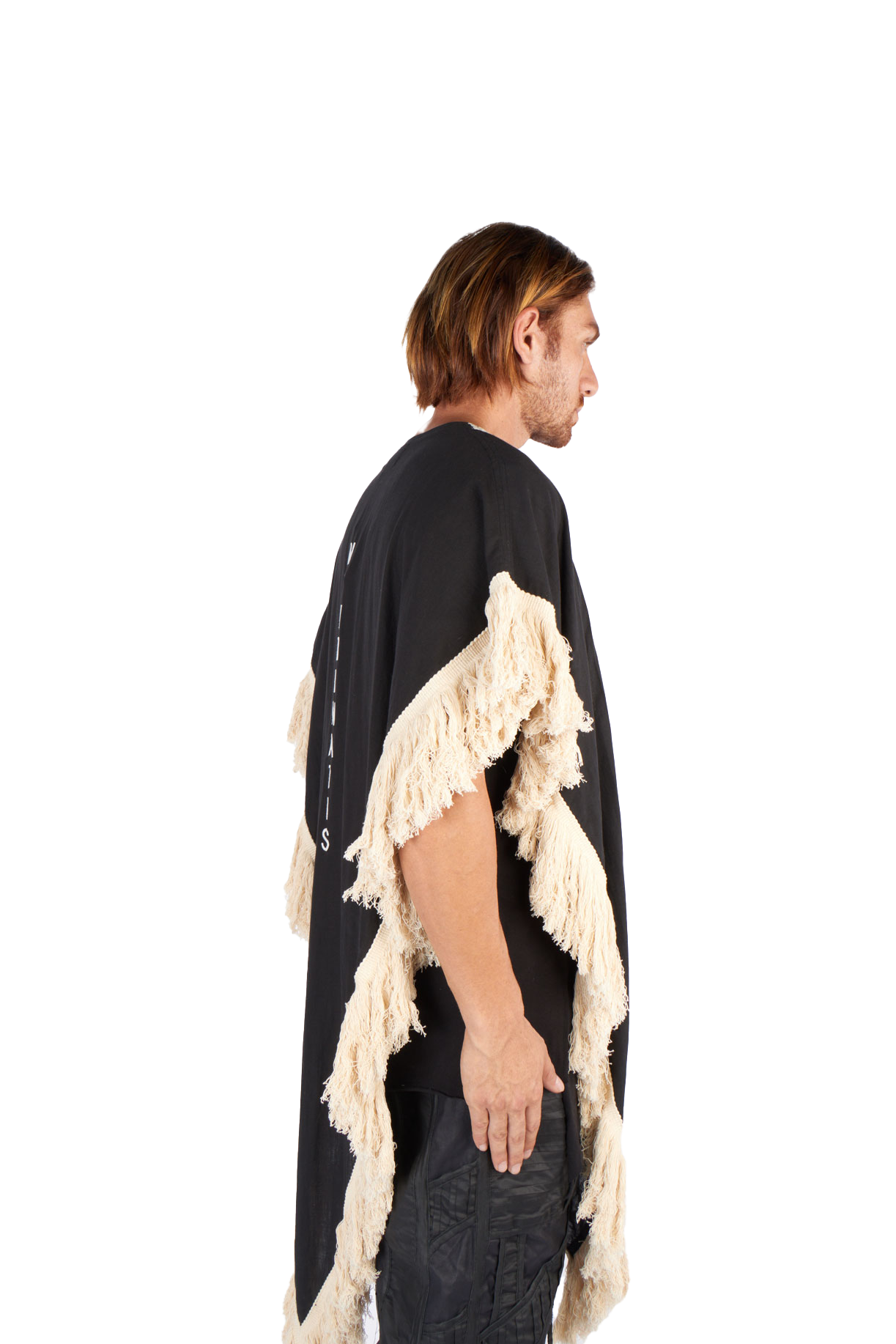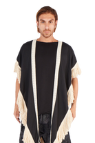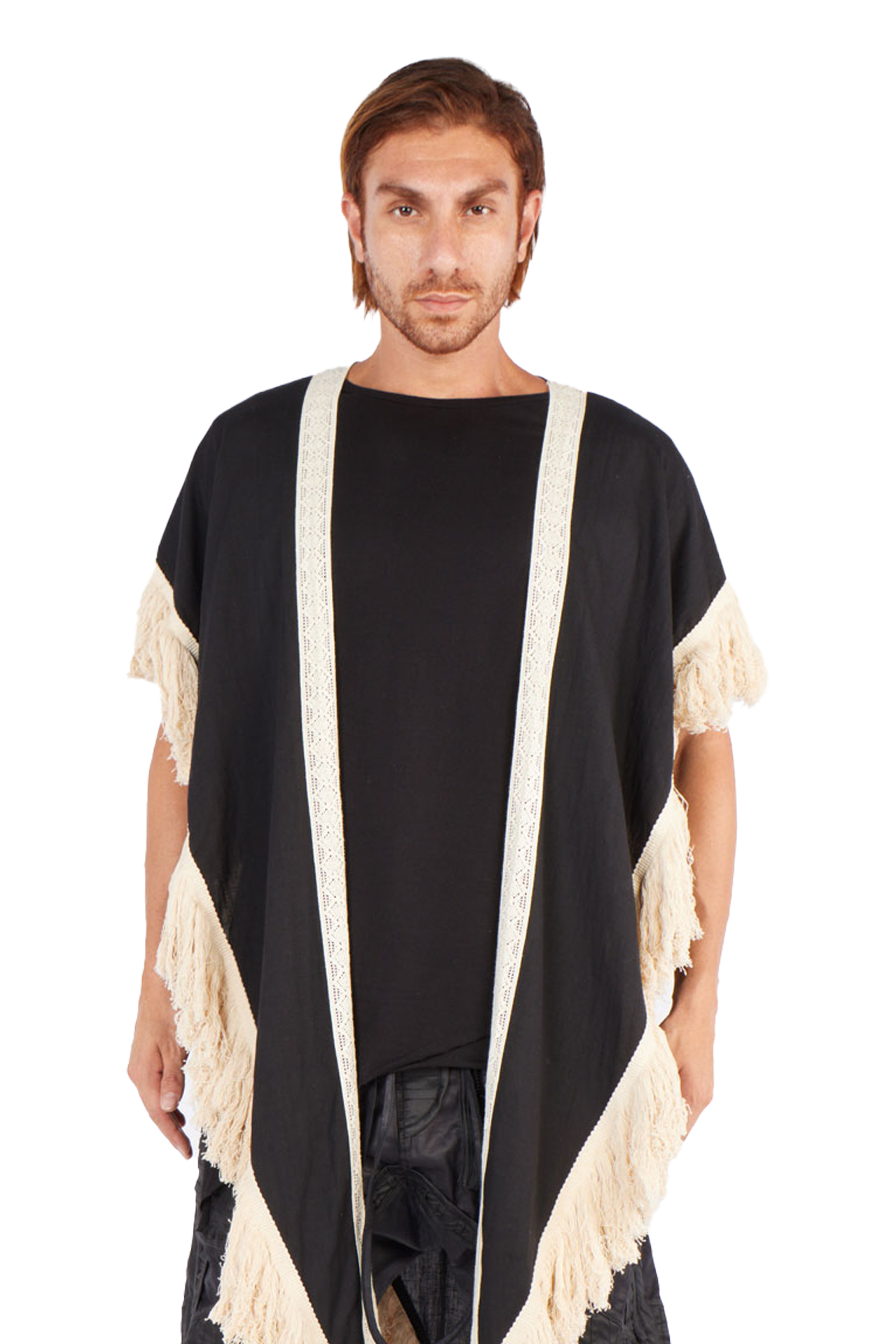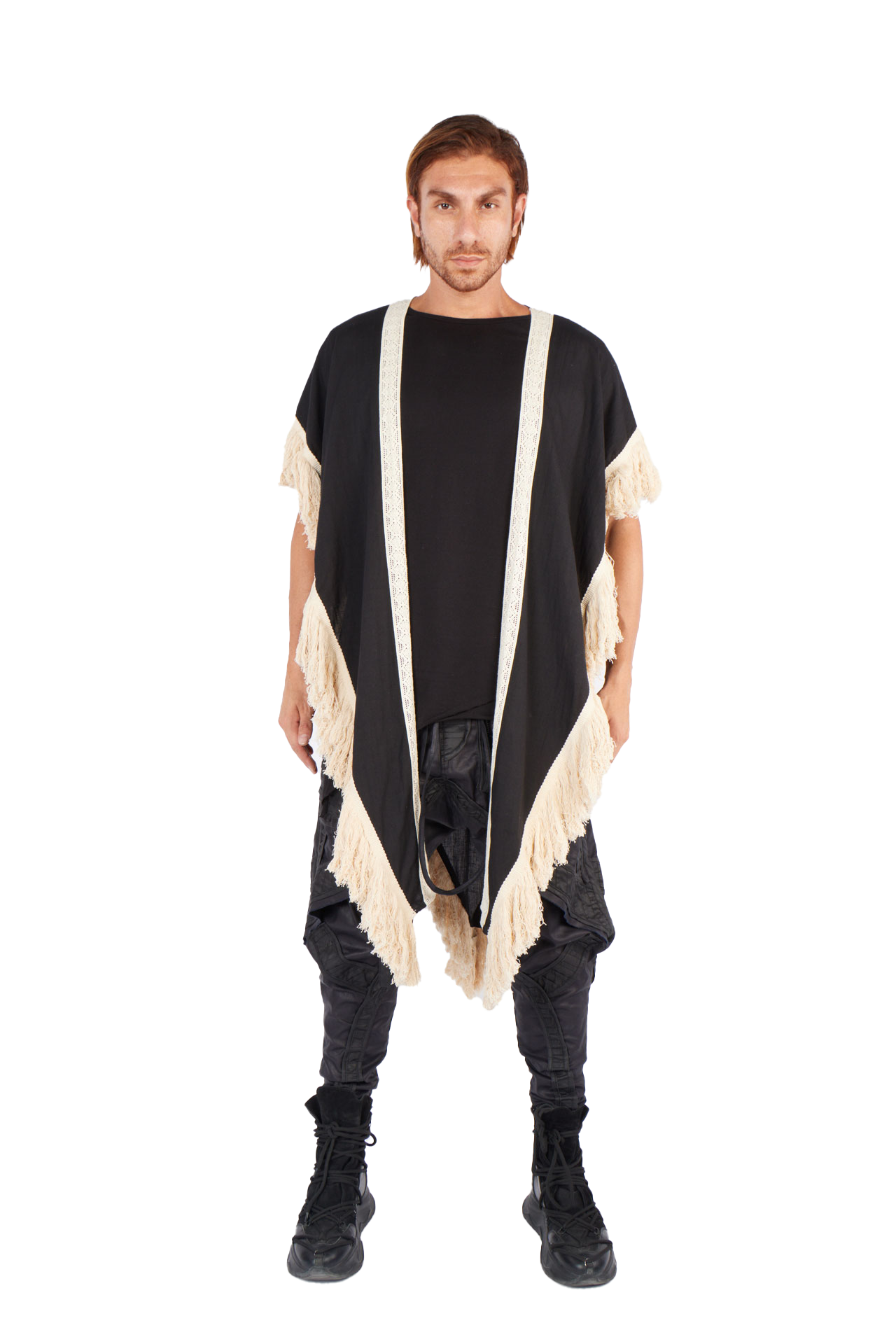 Embrace a fusion of arabesque charm and contemporary style with this distinctive and versatile tasseled cape: