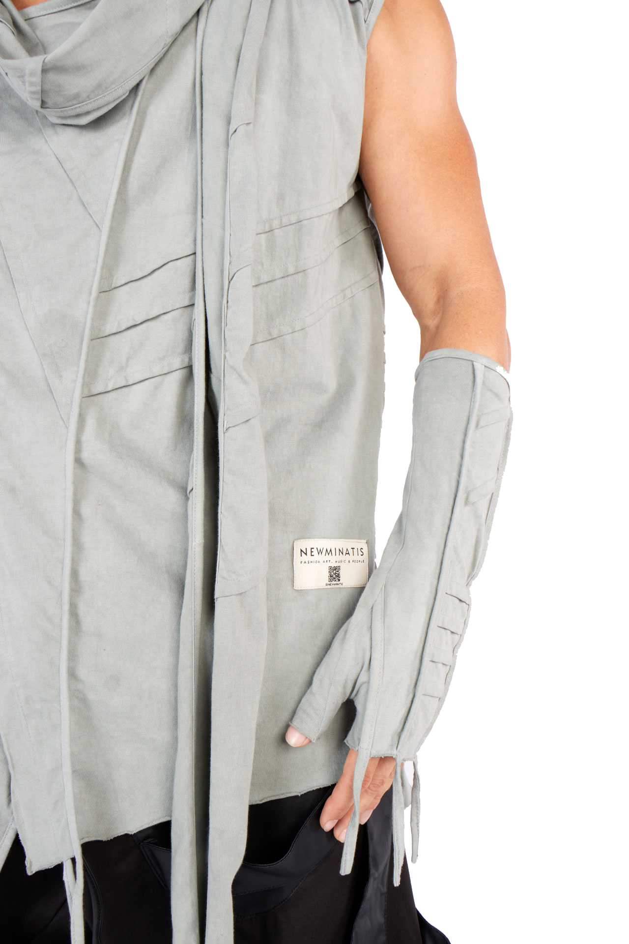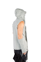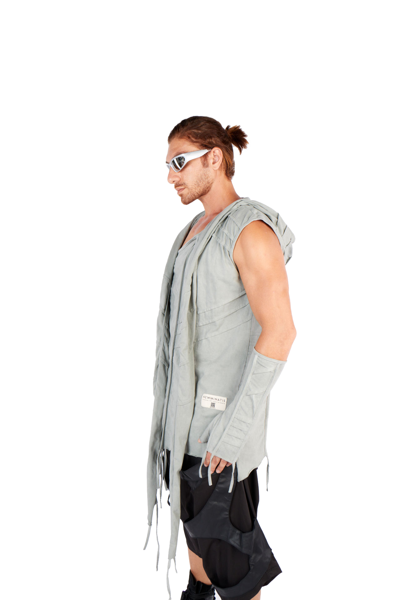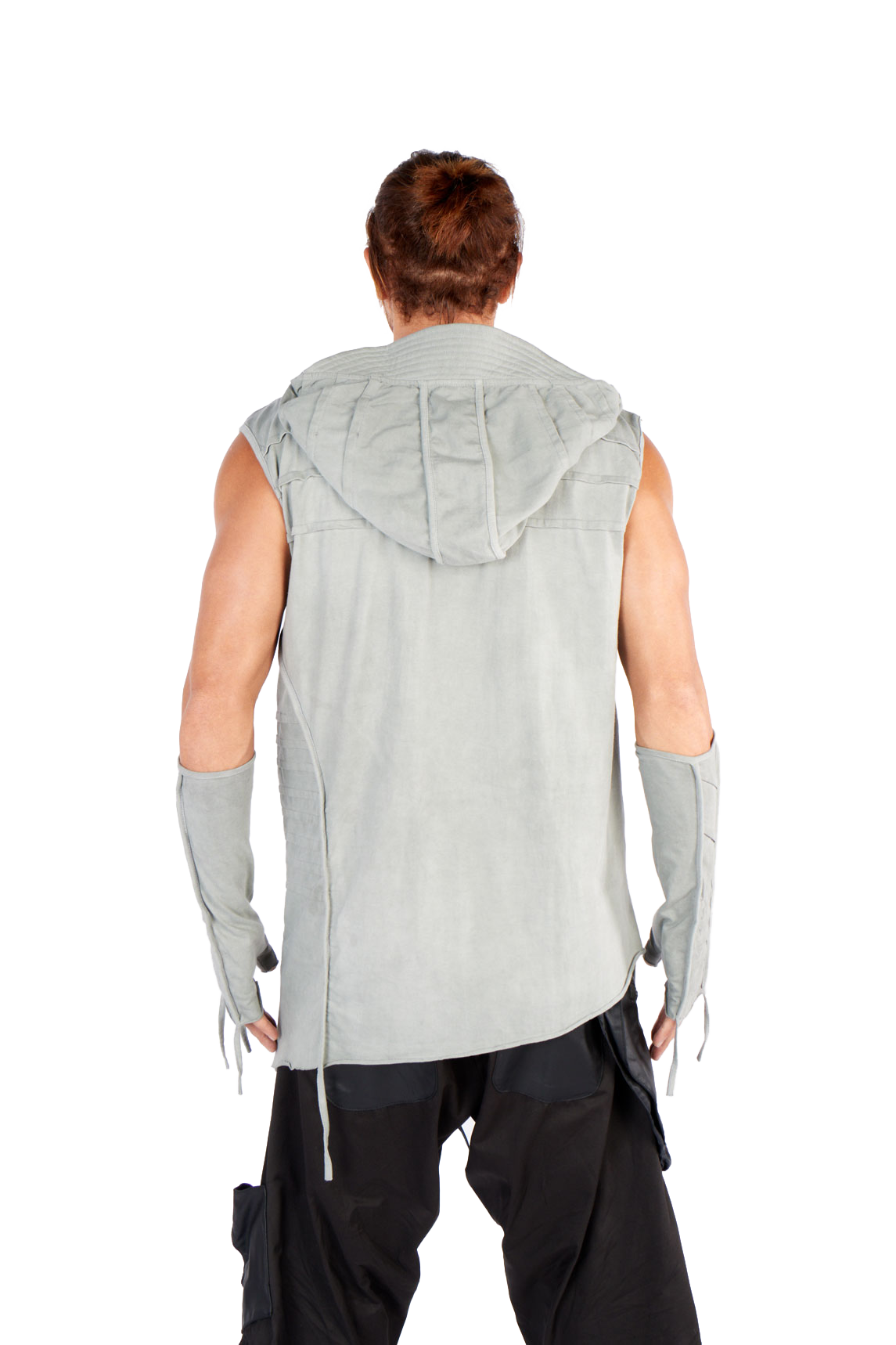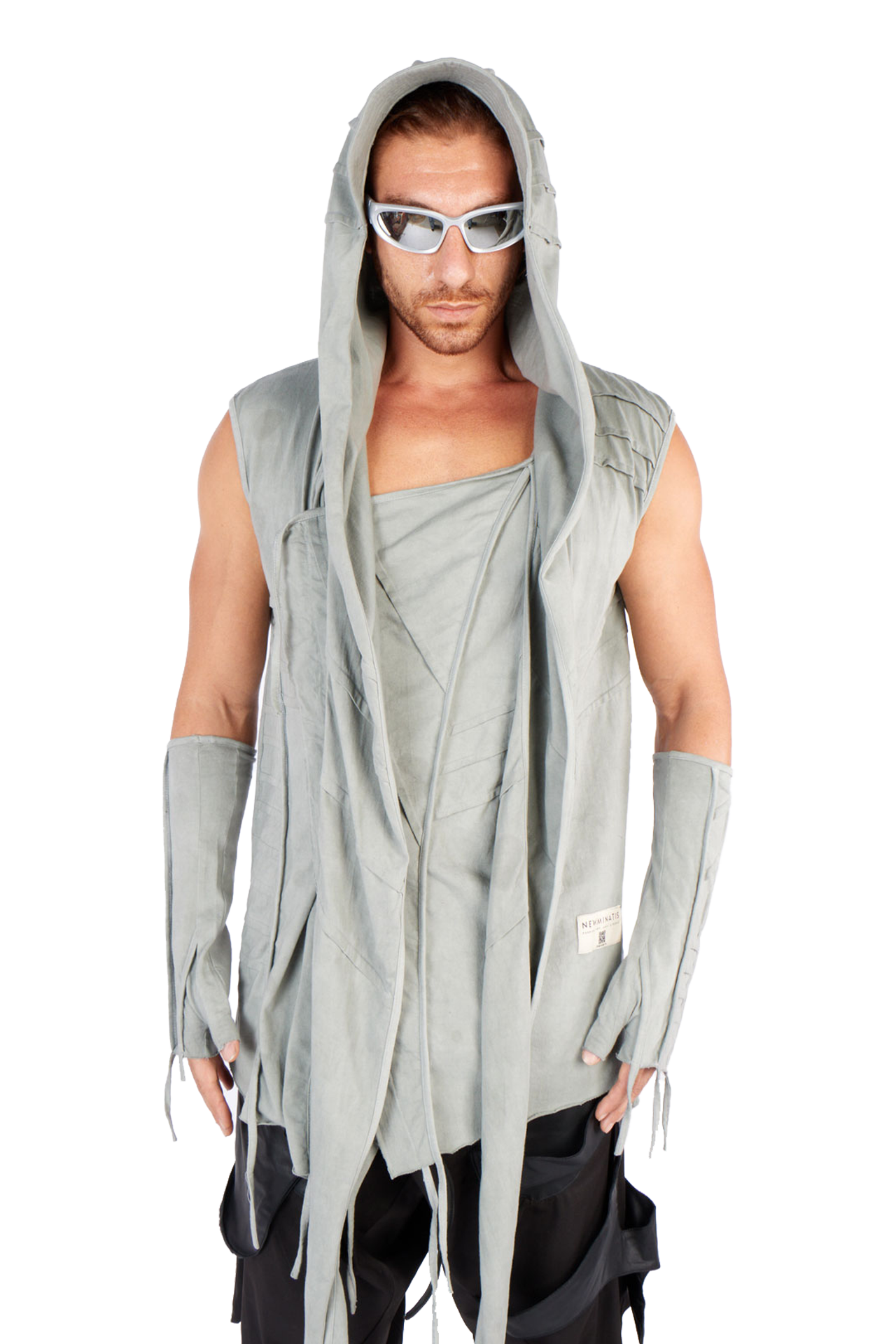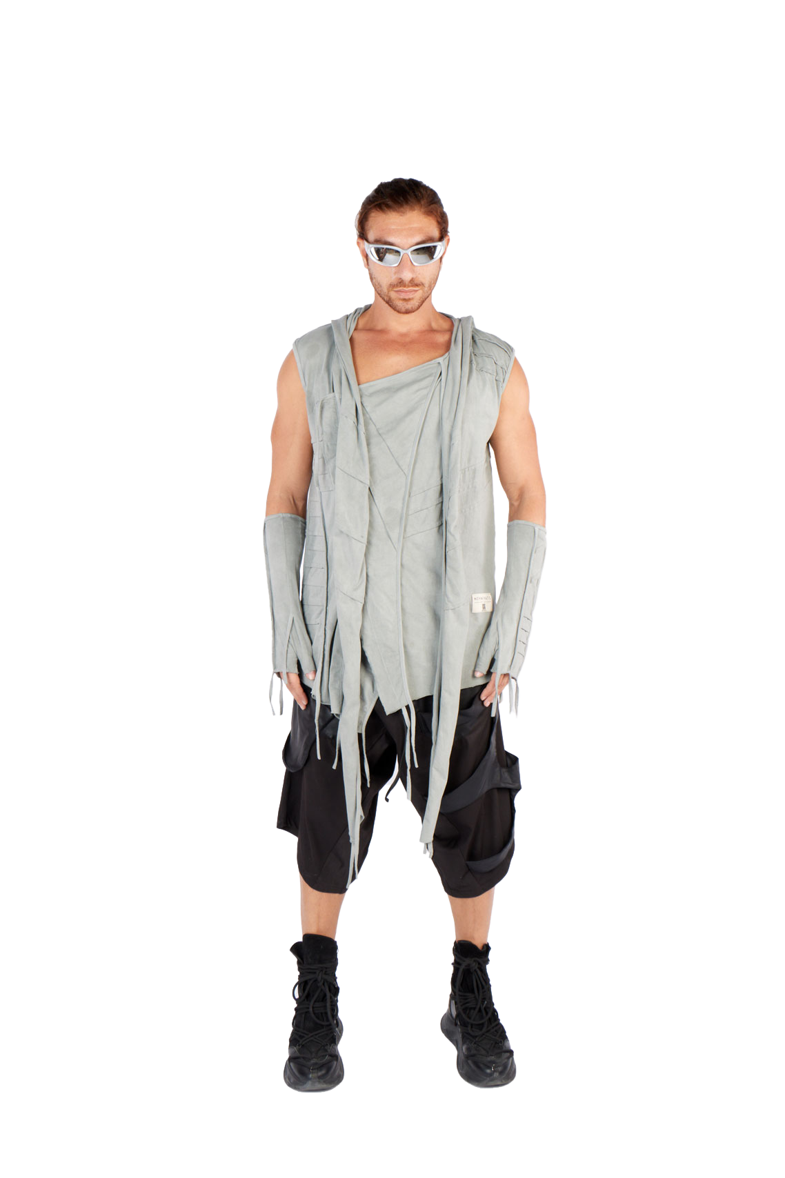 Introducing our futuristic sleeveless top, perfect for freedom of movement under the pulsating strobe lights:
