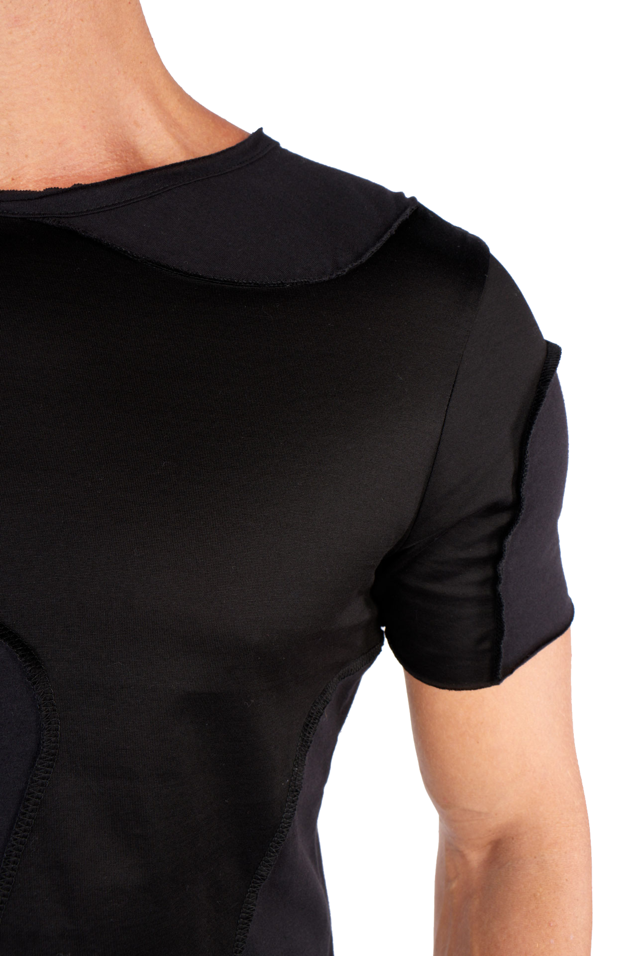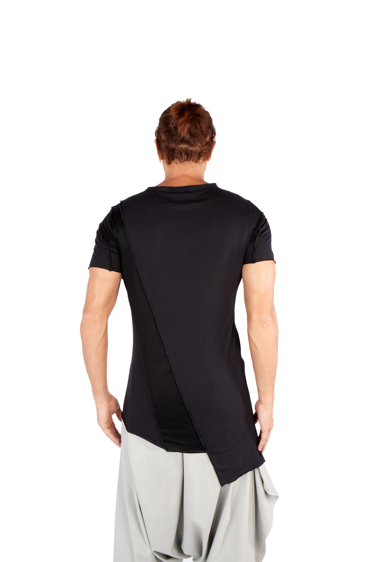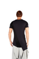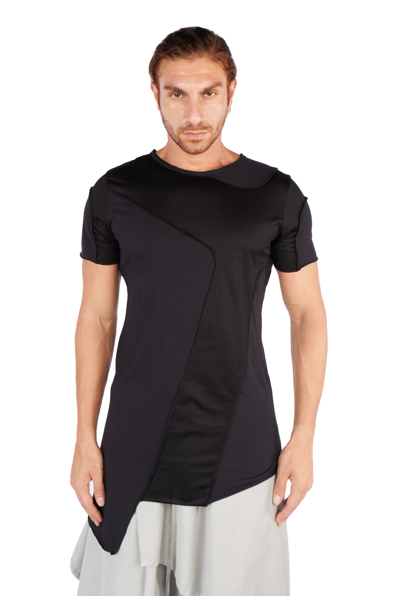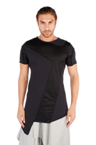 Introducing our asymmetrical irregular cut T-shirt, designed to elevate your wardrobe with a futuristic touch: