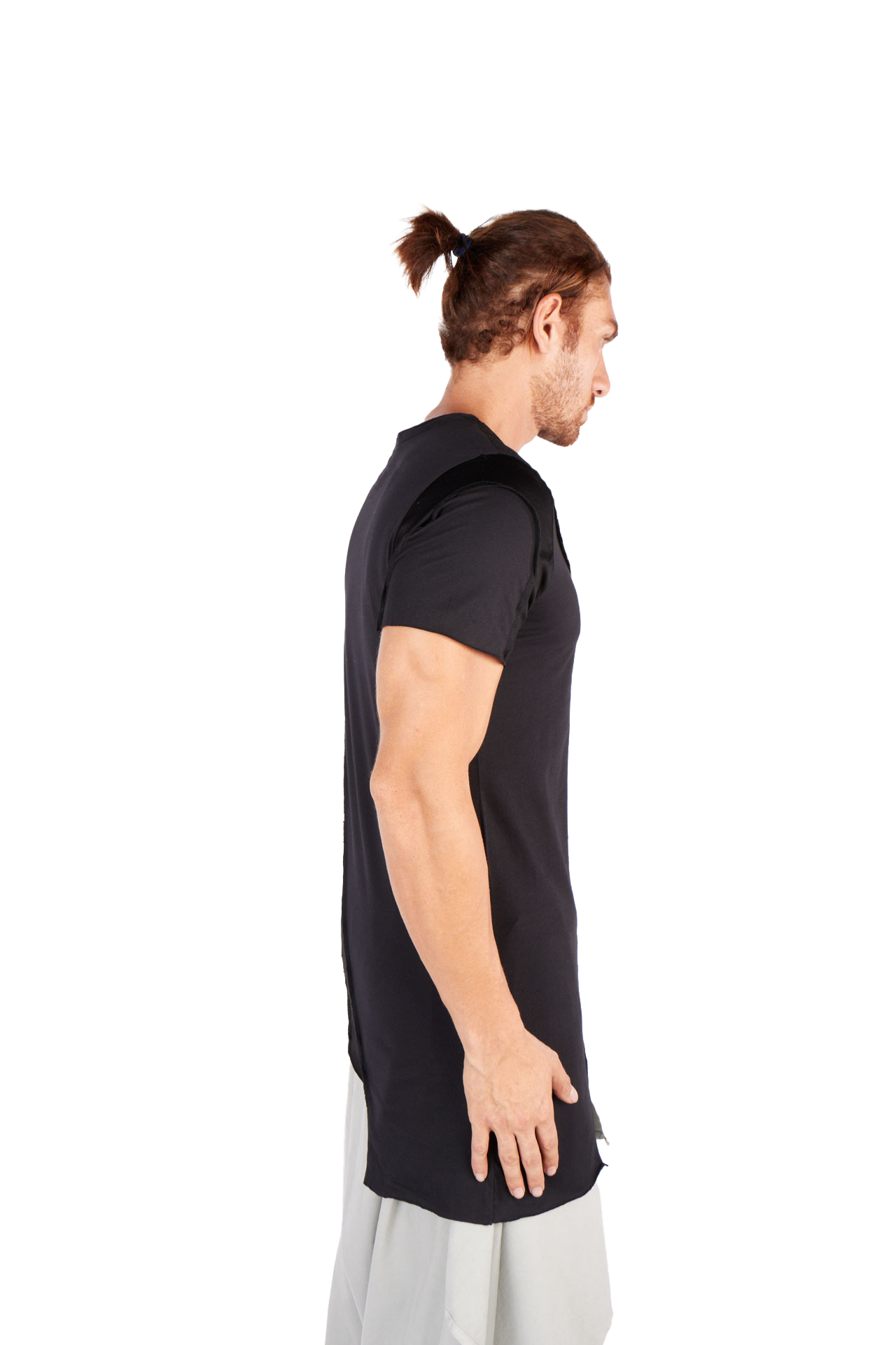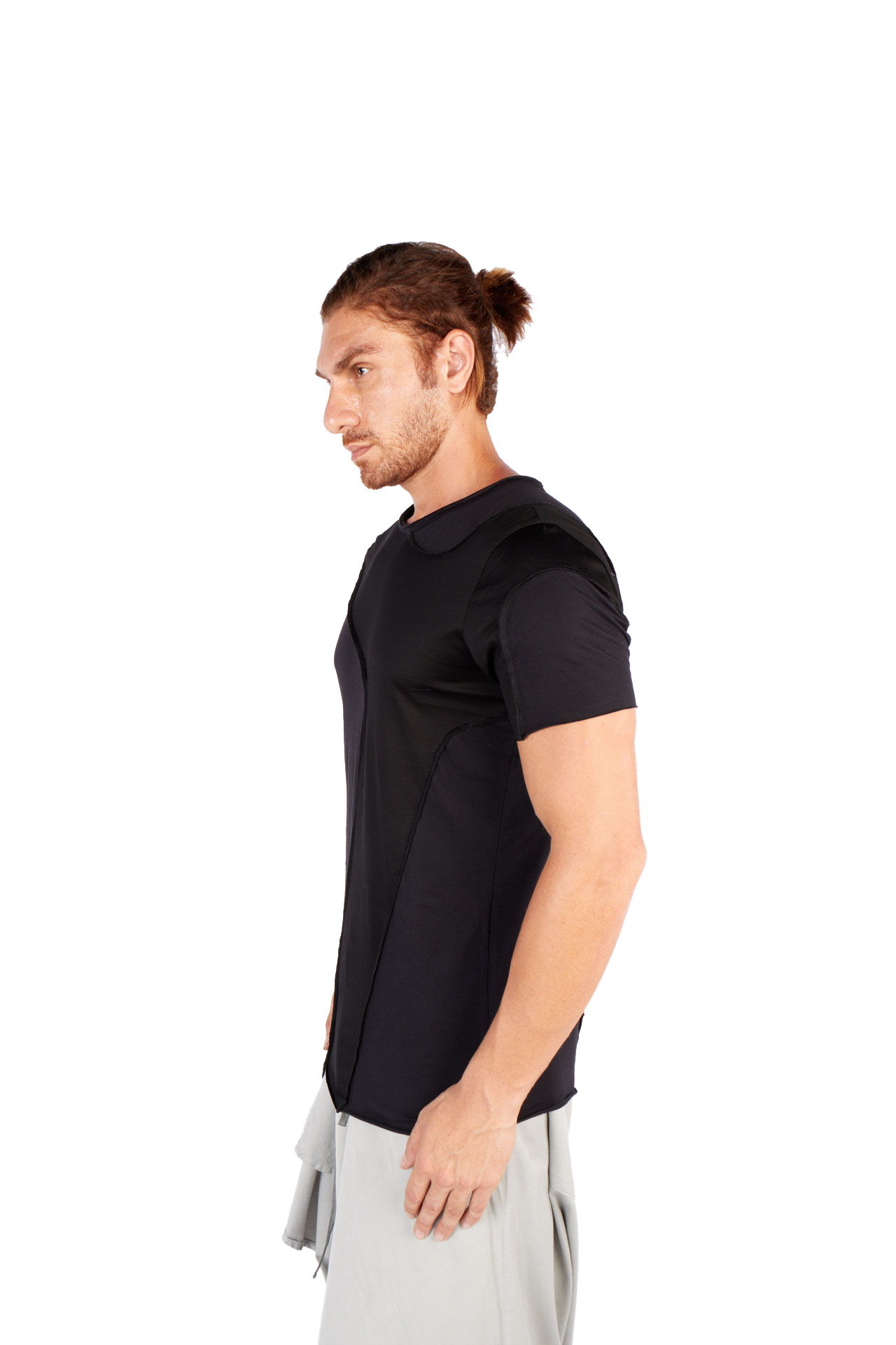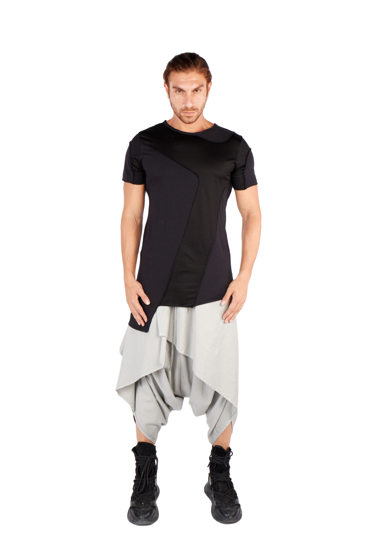 Introducing our asymmetrical irregular cut T-shirt, designed to elevate your wardrobe with a futuristic touch: