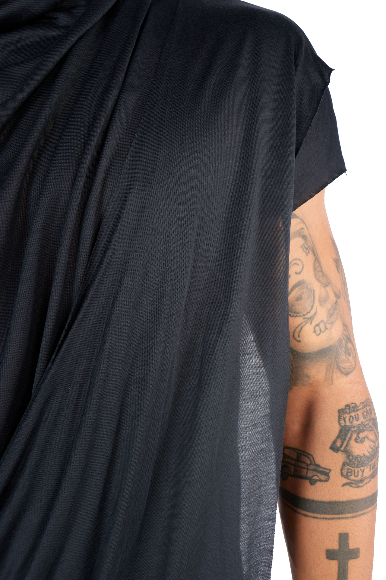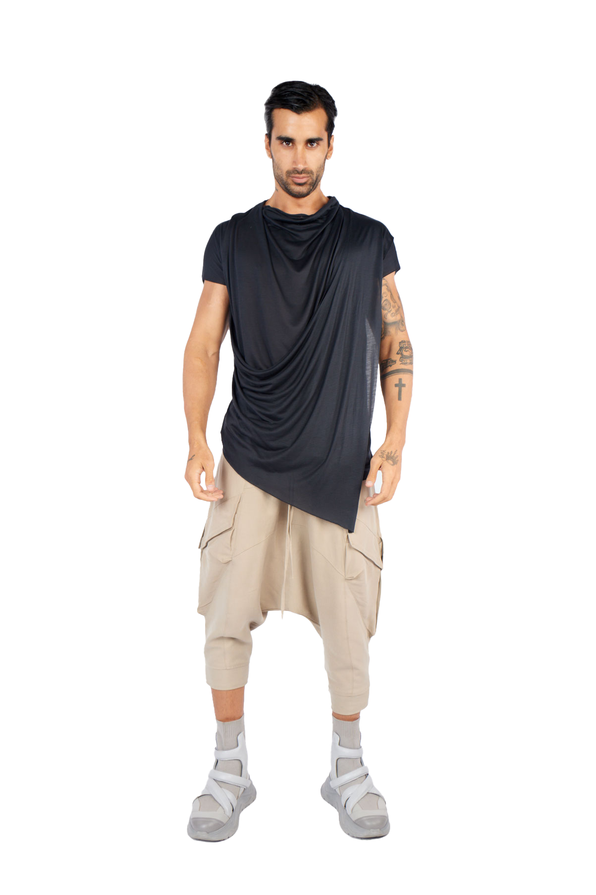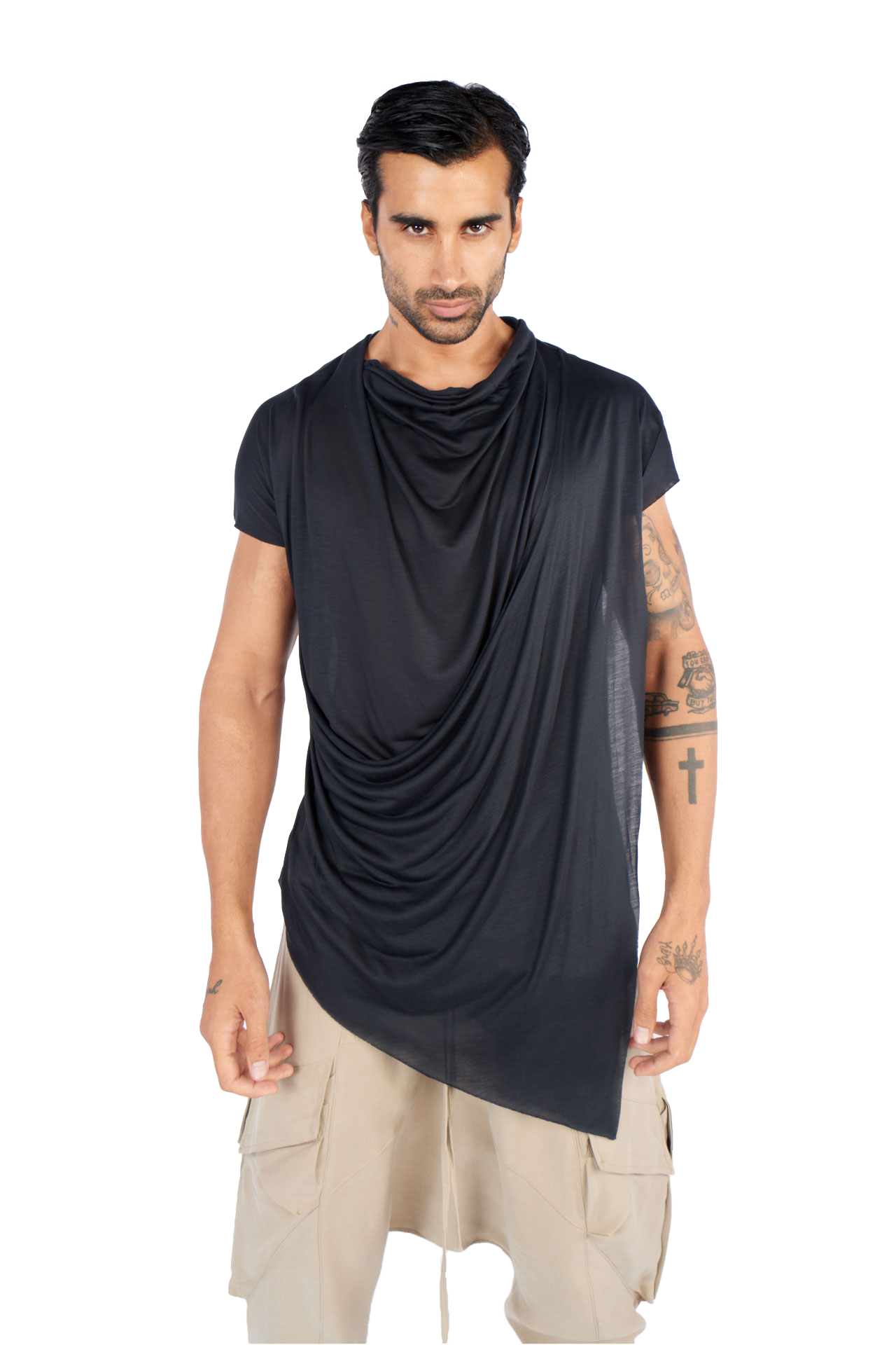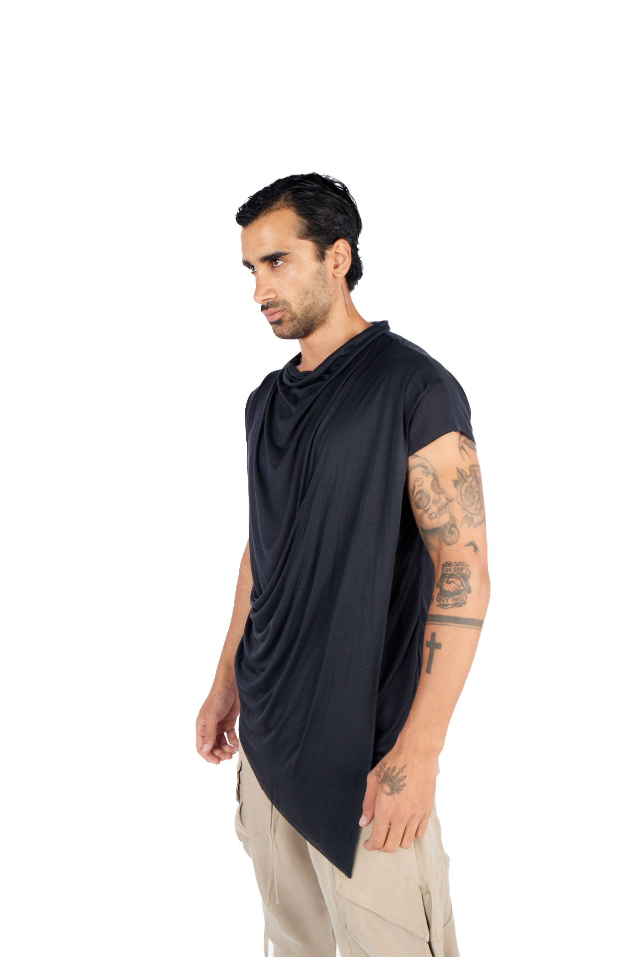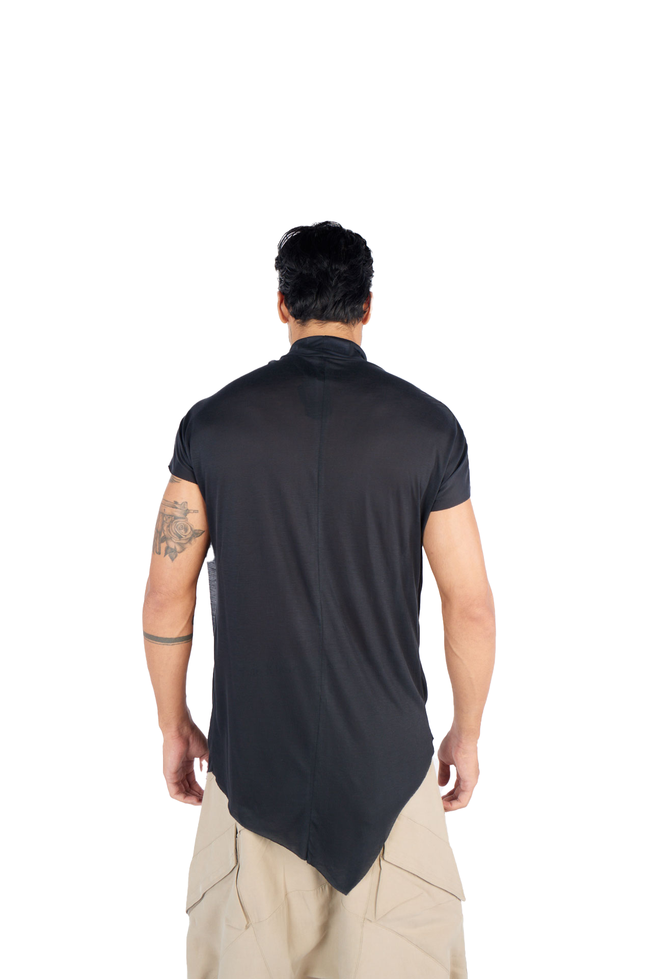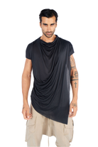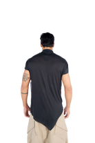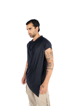 Introducing our asymmetrical irregular cut T-shirt, designed to elevate your wardrobe with a futuristic touch:
