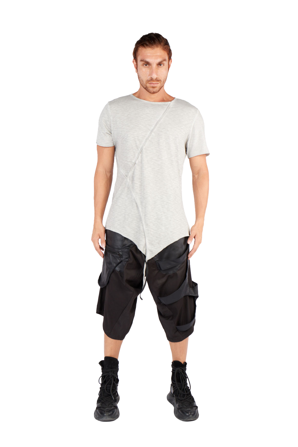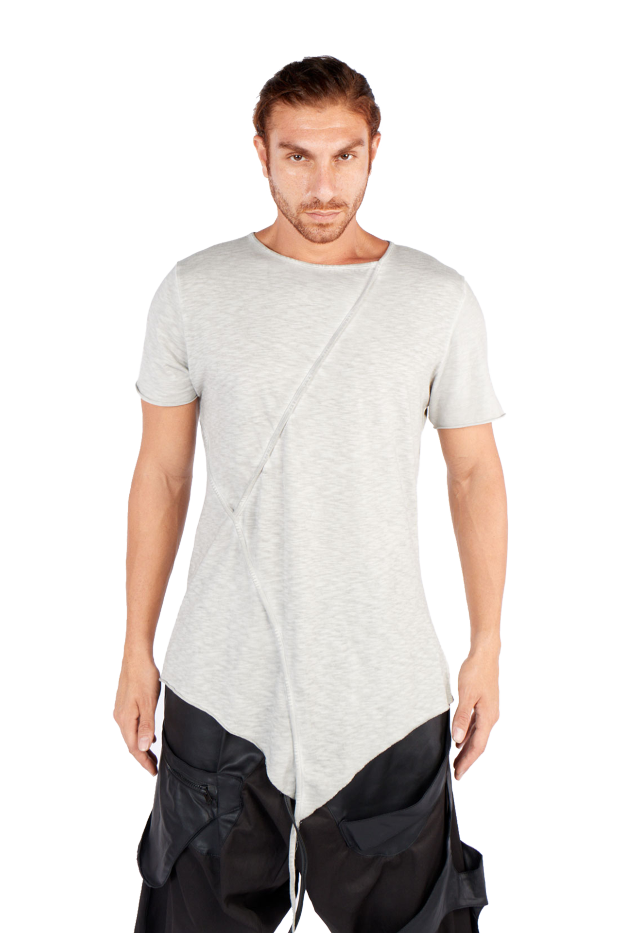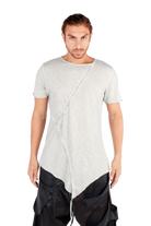Introducing our asymmetrical irregular cut T-shirt, designed to elevate your wardrobe with a futuristic touch: