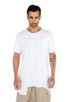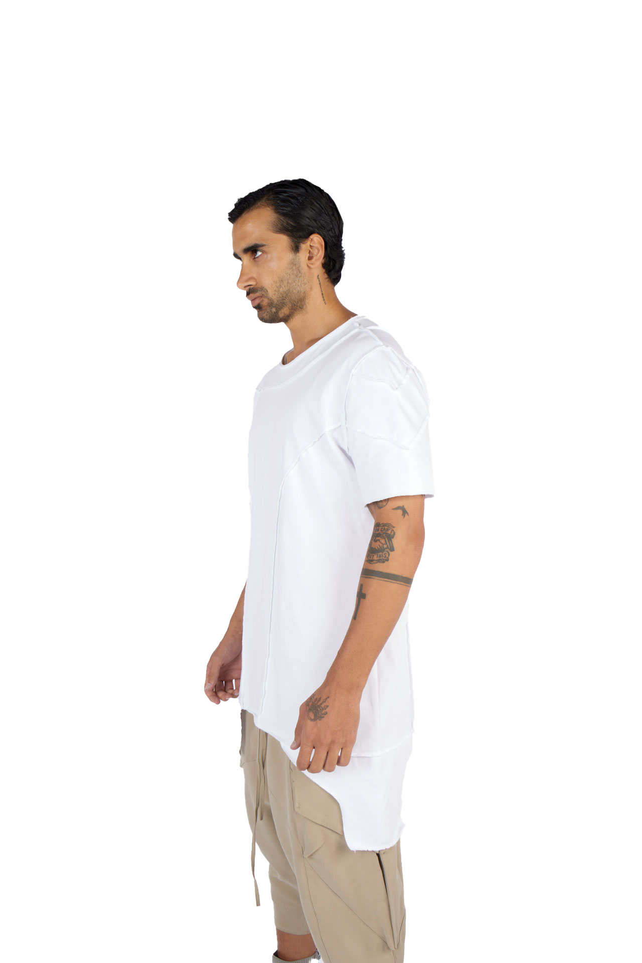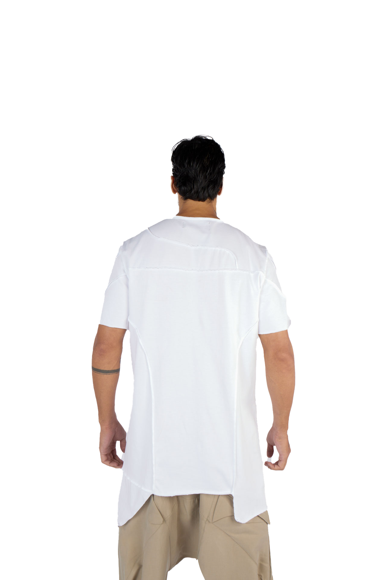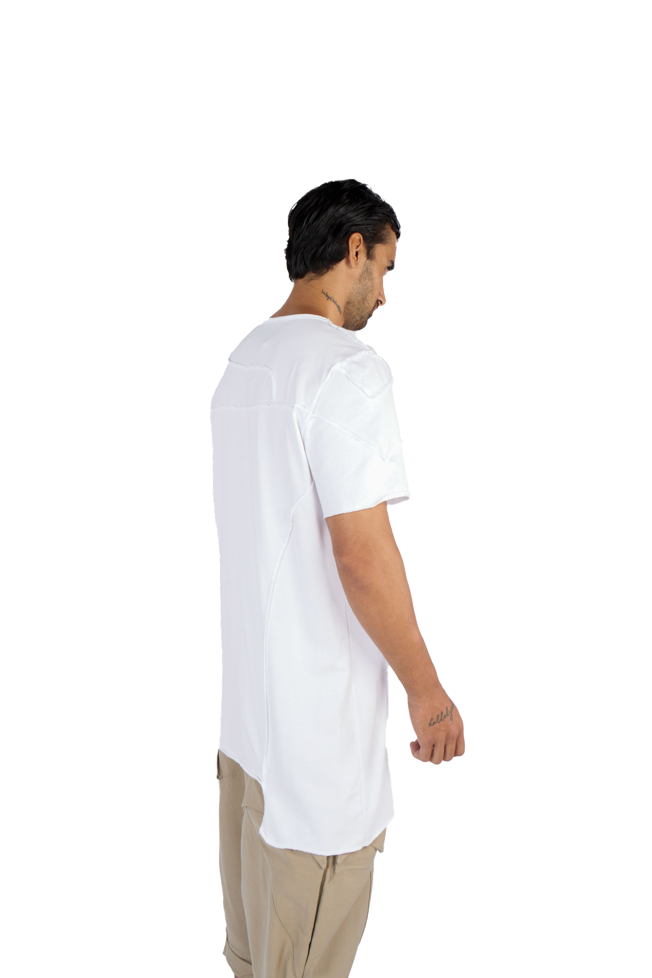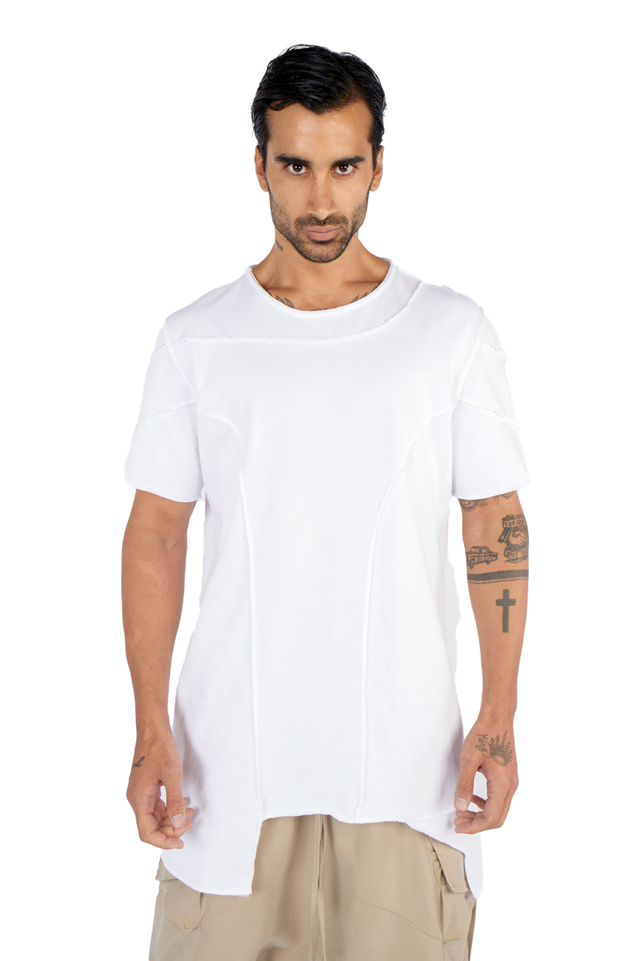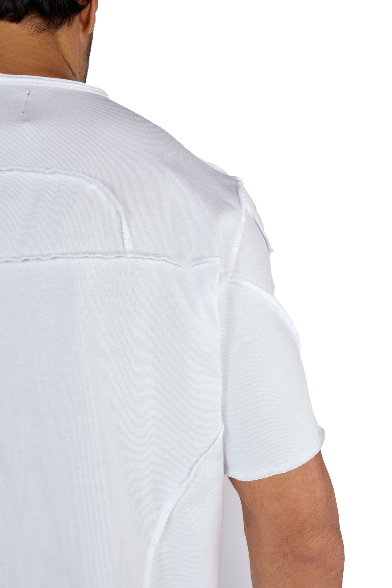 Introducing our deconstructed T-shirt, designed to elevate your wardrobe with a futuristic touch: