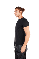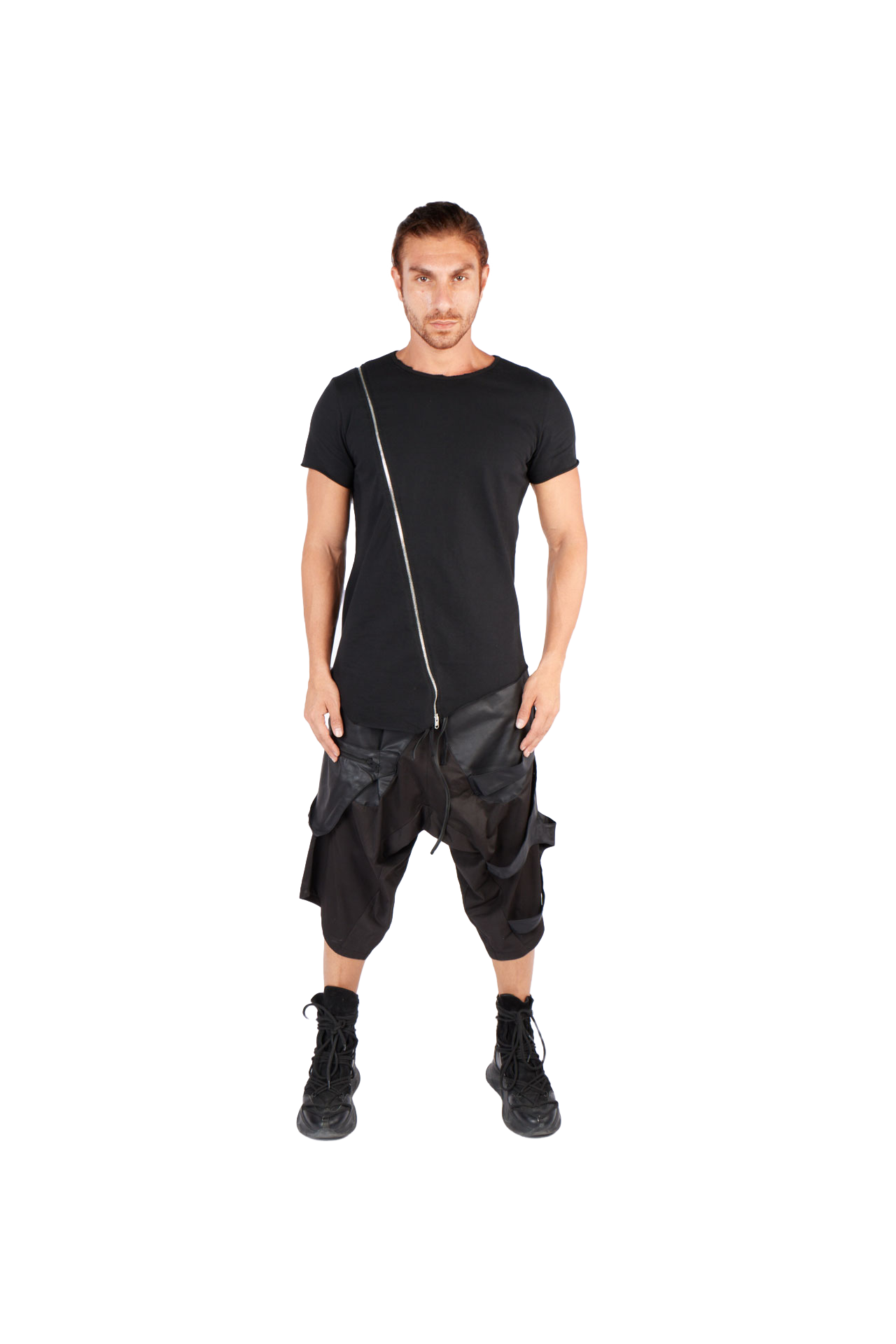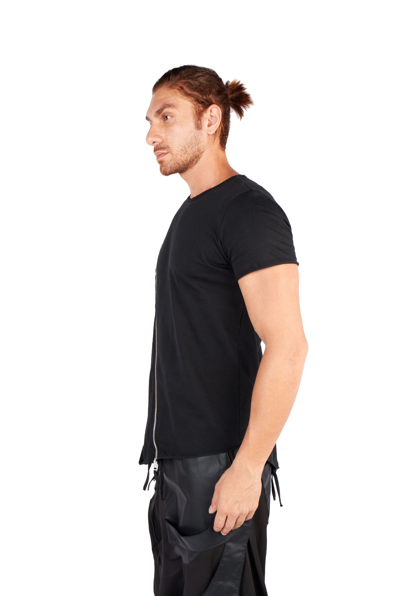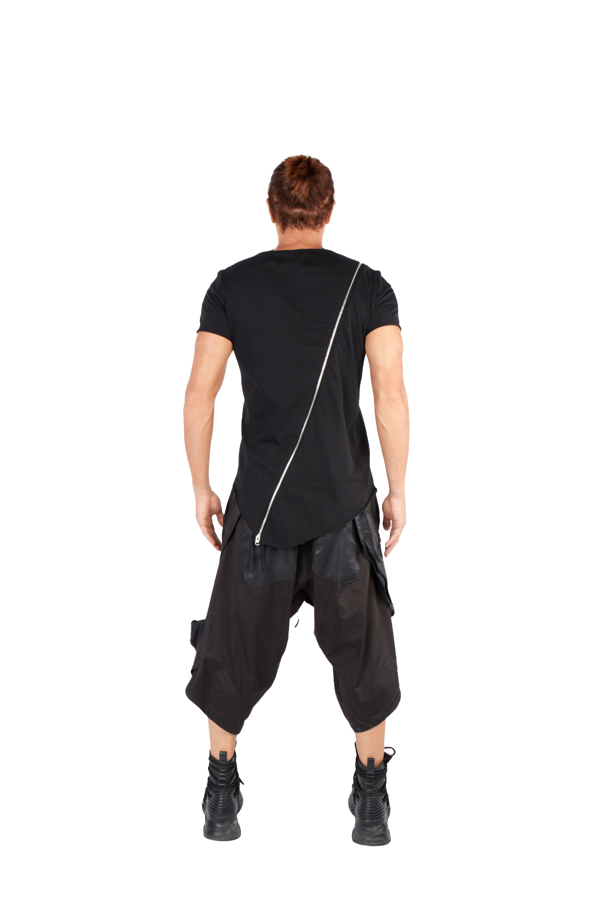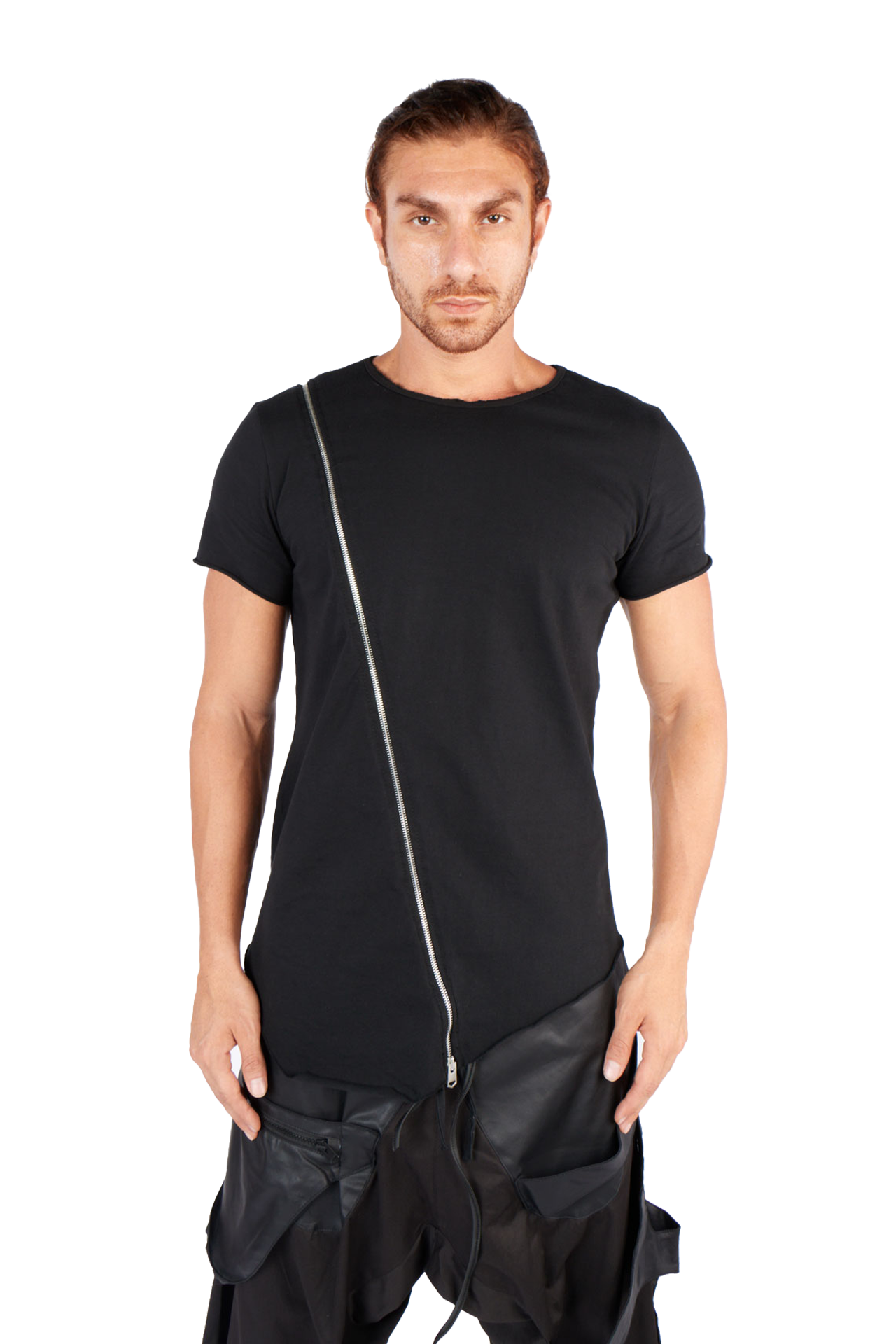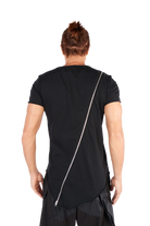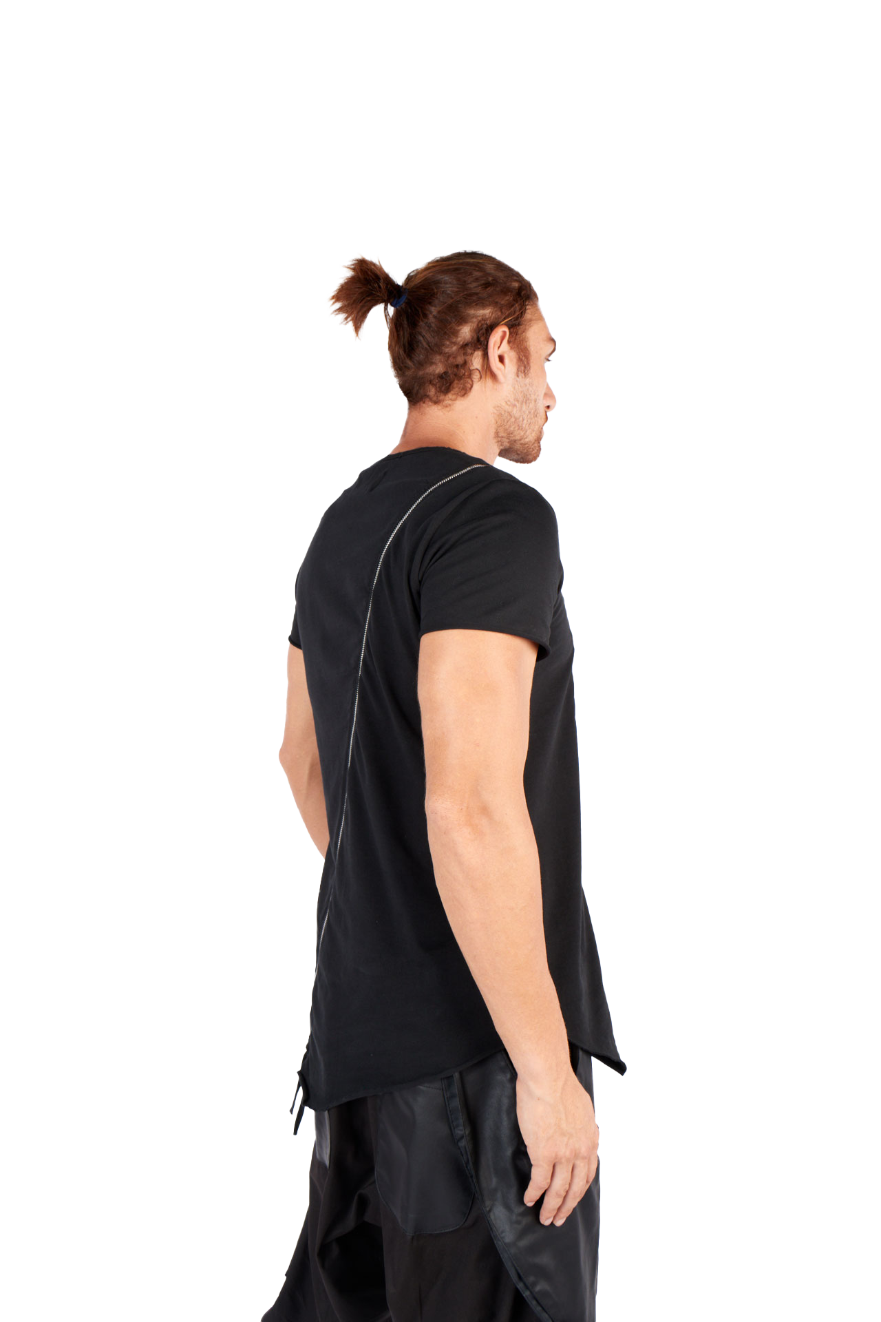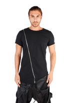 Introducing our asymmetrical irregular cut T-shirt, designed to elevate your wardrobe with a futuristic touch: