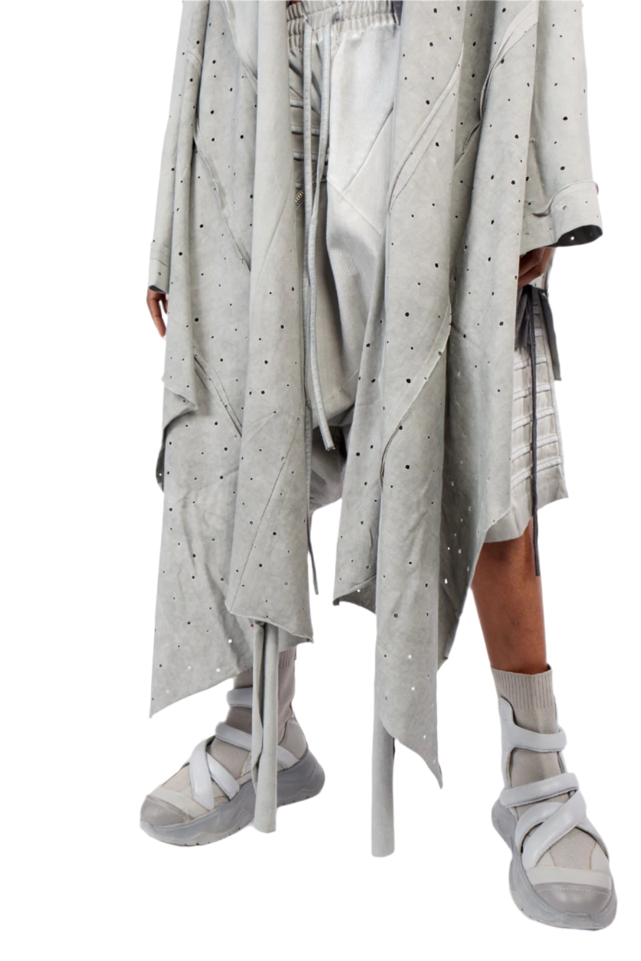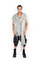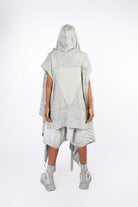 Discover our hooded deconstructed cardigan, inspired by cosmic wonders and designed with an open draping silhouette that transcends the ordinary: