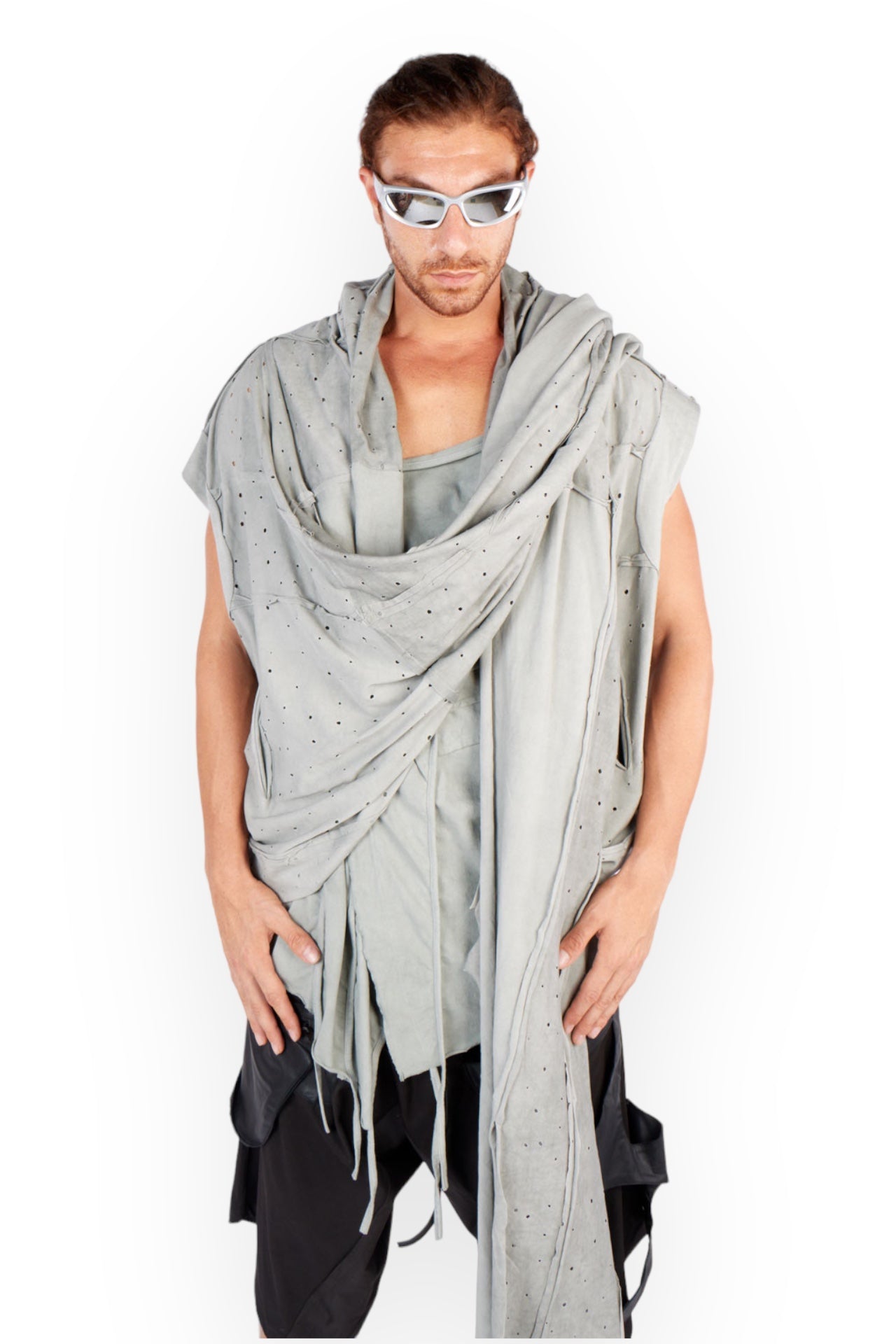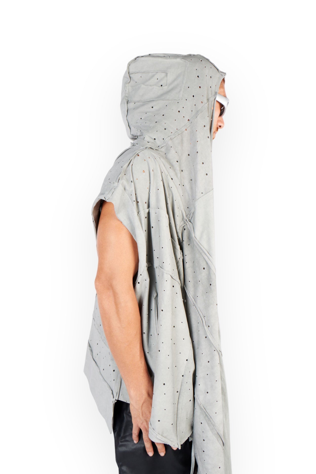 - Boasting a sleeveless, hooded silhouette that defies convention.