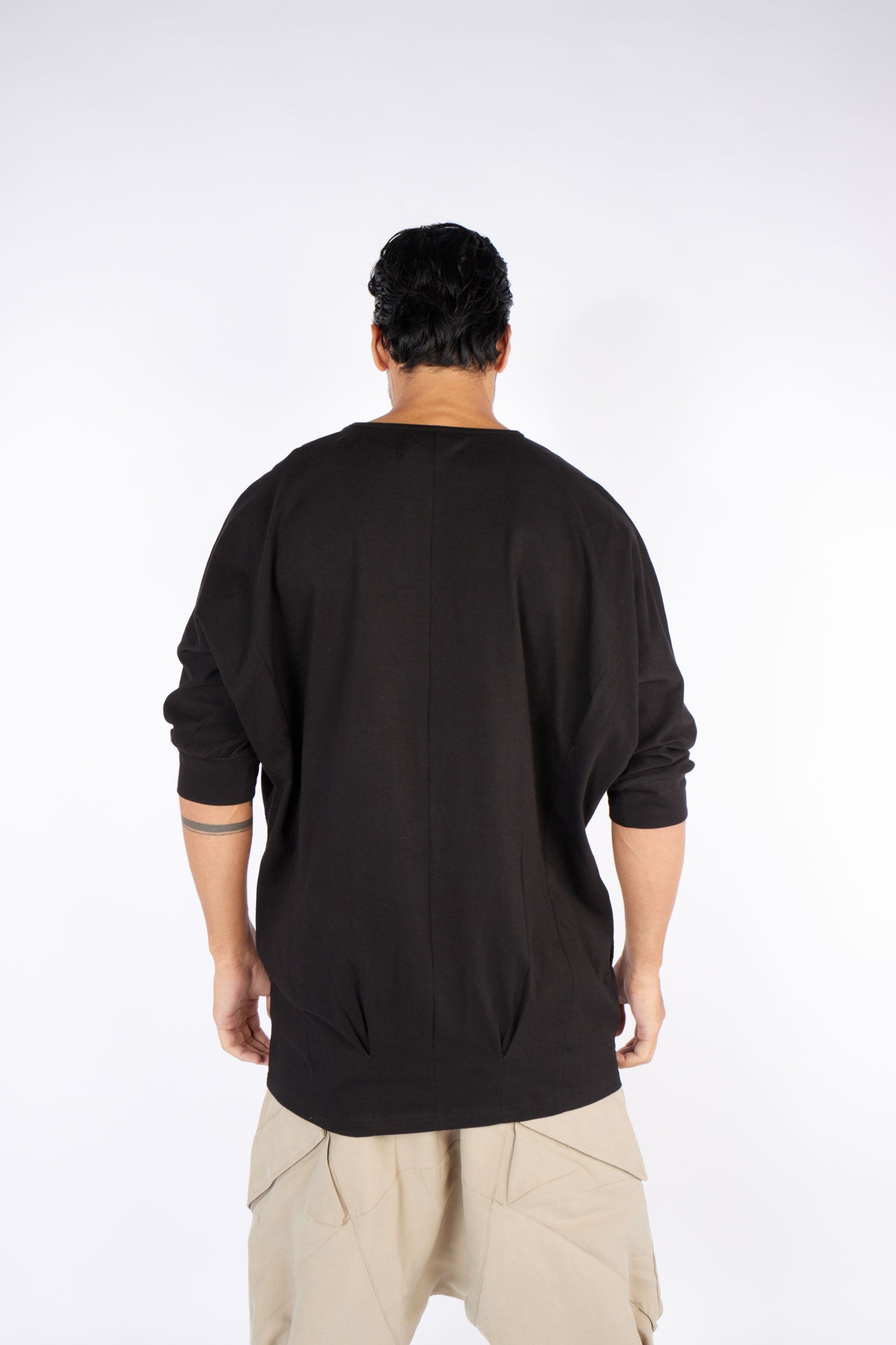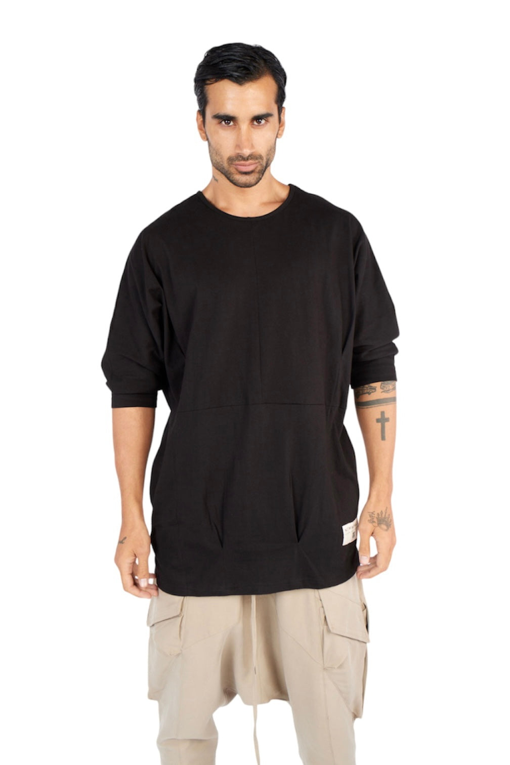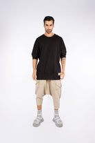 Glow of youthful energy under the backlight. Steal attention with this unisex oversized three-quarter-sleeved t-shirt, and stun everyone with seamless side pockets: