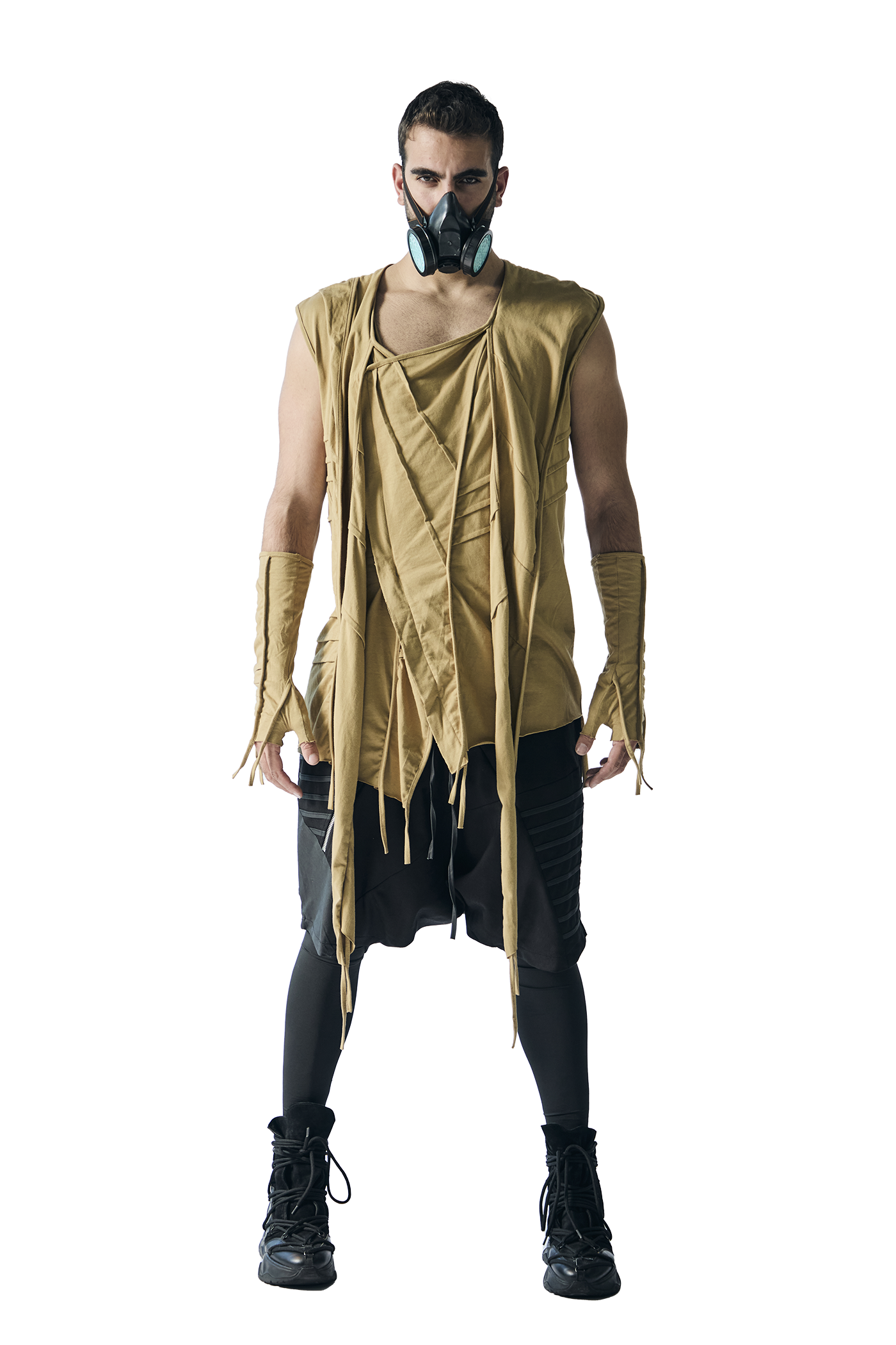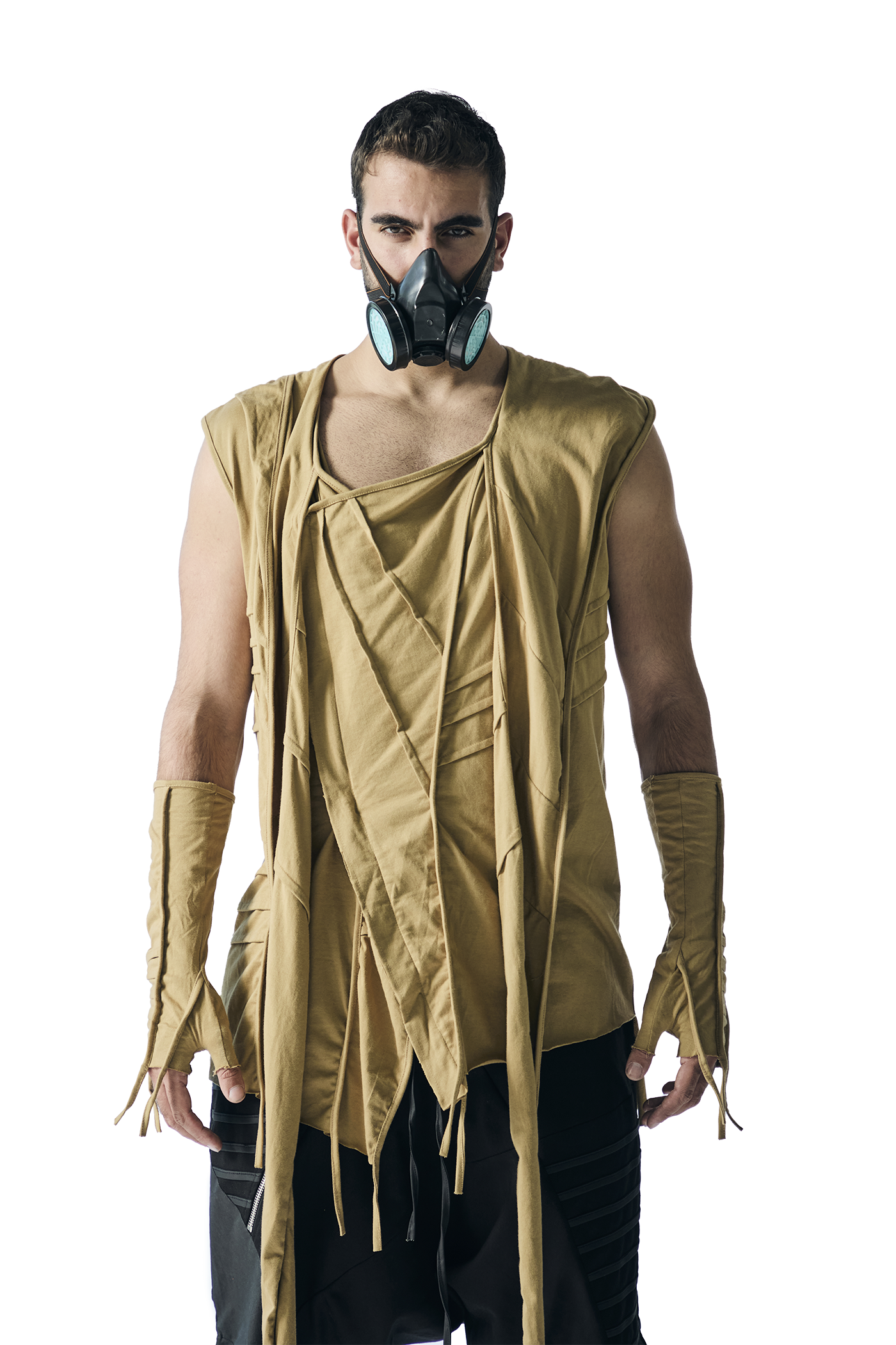Introducing our futuristic sleeveless top, perfect for freedom of movement under the pulsating strobe lights:
